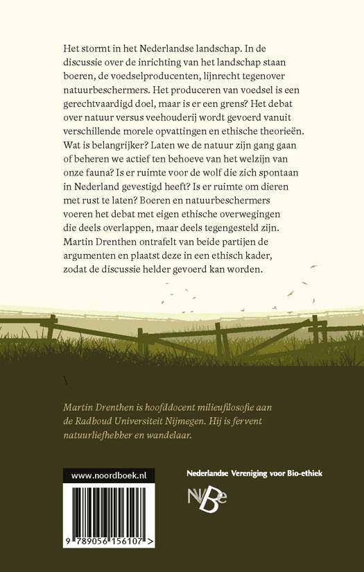 boeren mengen zich fel in het debat, met een eigen pakket aan ethische overwegingen die deels overlappen met, maar deels ook tegengesteld zijn aan die van de natuurbeschermers. Martin Drenthen ontrafelt van beide partijen de argumenten en plaatst deze in een ethisch kader, zodat de discussie met alle voors en tegens in ieder geval helder gevoerd kan worden.