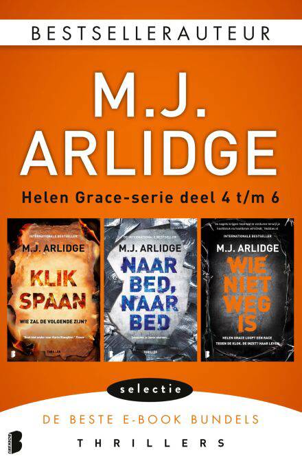 Klikspaan Inspecteur Helen Grace heeft zoiets nog niet eerder meegemaakt: zes branden in vierentwintig uur, met twee doden en meerdere gewonden als gevolg. Dit kan niet anders dan opzet zijn. Waar is de pyromaan die dit op zijn geweten heeft? En waarom maakt hij juist deze slachtoffers? Naar bed, naar bed Als het lijk van een bekende van Helen Grace in een nachtclub wordt gevonden, komt het moordonderzoek wel heel dicht bij haar eigen leven. Helen zwijgt over haar connectie met het slachtoffer en werkt als een bezetene om de dader te vinden. Tot er een tweede dode valt, en Helens zwijgen steeds moeilijker vol te houden wordt. Wie niet weg is Helen Grace was een van de beste rechercheurs van Southampton, maar nu zit ze zelf in de gevangenis, zinnend op een manier om haar onschuld te bewijzen. Als er een verminkt lichaam wordt gevonden in de cel naast die van haar, vreest Helen voor haar eigen leven.