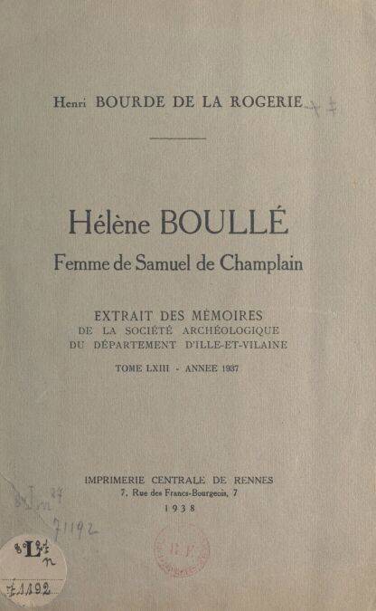 Si tout le monde connaît Samuel de Champlain, navigateur et cartographe qui fonda la ville de Québec le 3 juillet 1608, on ignore souvent qui était son épouse, Hélène Boullé, fille de Nicolas Boullé, secrétaire de la chambre du Roi. Dans cet extrait du tome 63 des Mémoires de la Société archéologique du département d'Ille-et-Villaine, paru en 1937, Henri Bourde de La Rogerie nous dresse le portrait et nous rappelle la vie de celle qui fut mariée à seulement 12 ans…