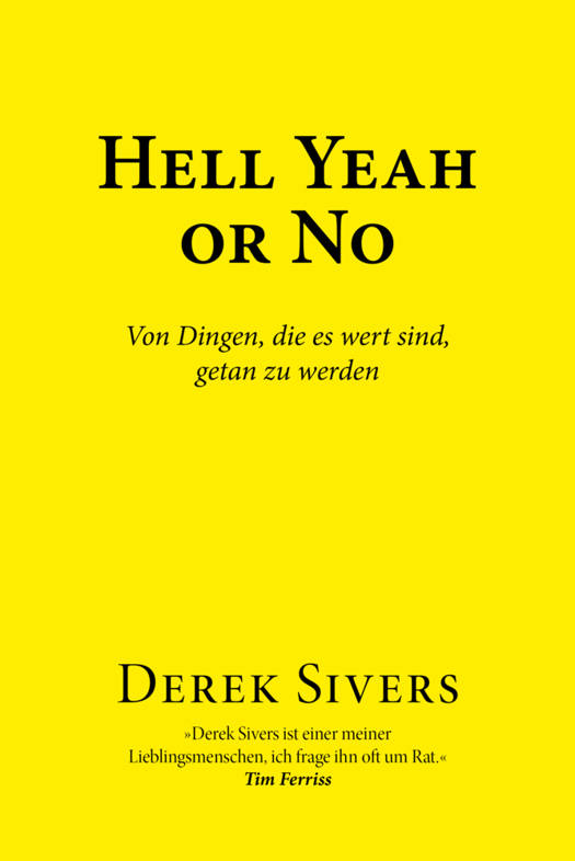 Hell Yeah Or No ist ein Einblick in die geradezu geniale Gedankenwelt des Entrepreneurs, Musikers und Speakers Derek Sivers was ihn bei seinen Entscheidungen antreibt, wie er über den "Erfolg" oder "Misserfolg" eines Projekts entscheidet und welche Lehren er aus jedem Projekt zieht, um seine bereits beeindruckenden Methoden weiter auszubauen.
