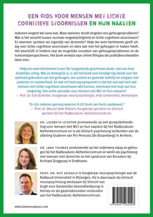 Help me even herinneren geeft uitleg over lichte cognitieve stoornissen en alles wat met het geheugen te maken heeft. Het beschrijft in heldere taal de mogelijke oorzaken van geheugenproblemen en de toekomstperspectieven.