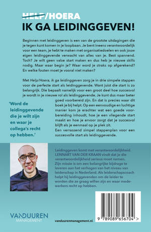 Met Help/Hoera, ik ga leidinggeven! zorg je in drie simpele stappen voor de perfecte start als leidinggevende. Want juist die start is zo belangrijk. Die bepaalt namelijk voor een groot deel hoe succesvol je wordt in je nieuwe rol als leidinggevende. Je kunt dus maar beter goed voorbereid zijn. En dat is precies waar dit boek je bij helpt. Op een eenvoudige en luchtige manier kom je erachter wat een goede voorbereiding inhoudt, hoe je een vliegende start maakt en hoe je ervoor zorgt dat je succesvol blijft als je eenmaal op je plek zit. Kortom, dit boek geeft je een verrassend simpel stappenplan voor een succesvolle start als leidinggevende.