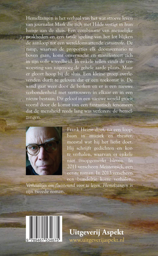 Frank Heine doet, na een loopbaan in muziek en theater, meestal wat hij het liefst doet. Hij schrijft gedichten en korte verhalen, waarvan er enkele niet onopgemerkt bleven. In 2011 verscheen Meisterstück, een eerste roman. In 2013 verscheen een bundeltje korte verhalen, Verhaaltjes om fluisterend voor te lezen. Hemelzangen is zijn tweede roman.