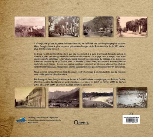 Ayant séjourné une douzaine d'années dans l'île, H. Georgi laisse plus de 600 prises de vues de la Réunion à la fin du XIXe siècle. Il démontre un sens aigu du cadrage et de la mise en scène, malgré un matériel lourd au déclenchement lent. Il invente un filtre pour atténuer les effets du soleil ardent ou réalise des clichés successifs afin de pouvoir les assembler en diaporamas.