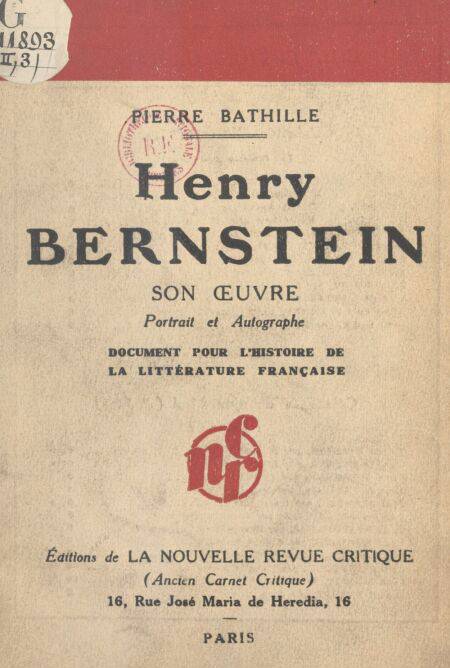 Henry Bernstein : son œuvre, portrait et autographe E-BOOK