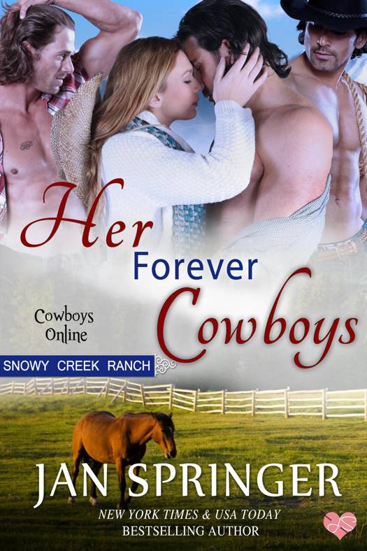 Cowboys Online Series ~ Book One – Cowboys for Christmas (Moose Ranch), Book Two – Cowboys in Her Pocket (Moose Ranch), Book Three – Loving Her Cowboys (Moose Ranch), Book Four – Cowboys In Her Heart (Moose Ranch), Book Five – Always Her Cowboys (Moose Ranch), Book Six – Her Forever Cowboys (Snowy Creek Ranch).