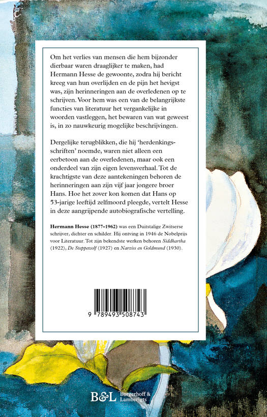 Dergelijke terugblikken, die hij ‘herdenkingspagina’s’ noemde, waren niet alleen een eerbetoon aan de overledenen, maar ook een onderdeel van zijn eigen levensverhaal. Tot de krachtigste van deze aantekeningen behoren de herinneringen aan zijn vijf jaar jongere broer Hans. Hoe het zover kon komen dat Hans op 53-jarige leeftijd zelfmoord pleegde, vertelt Hesse in deze aangrijpende autobiografische vertelling.