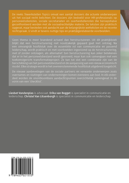 Herstructureren met of zonder ontslagen - Praktijkboek behandelt essentiële thema's zoals communicatie, leiderschap en de nieuwe aanbevelingen van sociale partners. Praktische voorbeelden en checklists maken het een waardevolle bron voor HR-professionals en managers.
