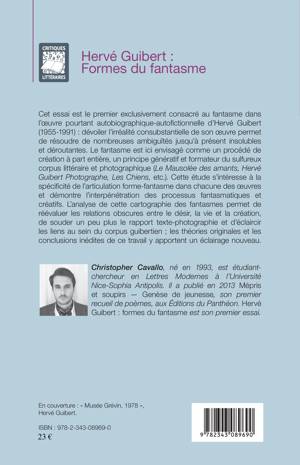 Cette étude s'intéresse à la spécificité de l'articulation forme-fantasme dans chacune des œuvres d'Hervé Guibert (1955-1991) et démontre l'interpénétration des processus fantasmatiques et créatifs. L'analyse de cette cartographie des fantasmes permet de réévaluer les relations obscures entre le désir, la vie et la création, de souder un peu plus le rapport texte-photographie et d'éclaircir les liens au sein du corpus guibertien ; les théories originales et les conclusions inédites de ce travail y apportent un éclairage nouveau.