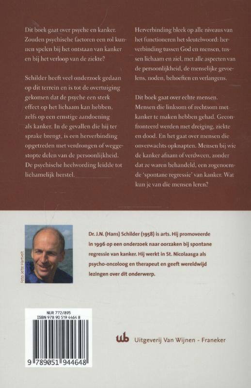 Dit boek gaat over psyche en kanker. Zouden psychische factoren een rol kunnen spelen bij het ontstaan van kanker en bij het verloop van de ziekte? Schilder heeft veel onderzoek gedaan op dit terrein en is tot de overtuiging gekomen dat de psyche een sterk effect op het lichaam kan hebben, zelfs op een ernstige aandoening als kanker. In de gevallen die hij ter sprake brengt, is een herverbinding opgetreden met verdrongen of weggestopte delen van de persoonlijkheid. De psychische heelwording leidde tot lichamelijk herstel. Herverbinding bleek op alle niveaus van het functioneren het sleutelwoord: herverbinding tussen God en mensen, tussen lichaam en ziel, met alle aspecten van de persoonlijkheid, de menselijke gevoelens, noden, behoeften en verlangens.