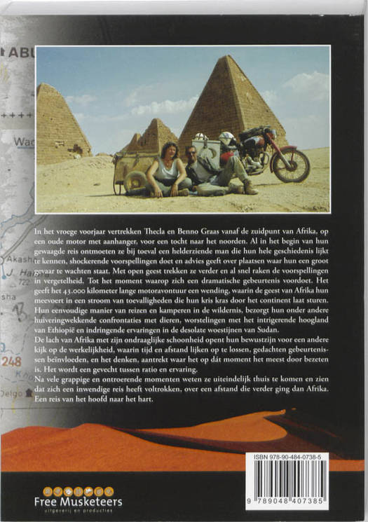 10e druk. Dit bijzondere boek vertelt het verhaal van een 43.000 kilometer lang motoravontuur, vanaf de zuidpunt van Afrika naar huis. In 424 pagina's en 80 prachtige illustraties weet de schrijver je op meeslepende, soms hilarische, dan weer ontroerende wijze mee te voeren naar de ondraaglijke schoonheid van Afrika.Al in het begin van hun reis komen Benno en zijn vrouw Thecla er achter dat de kleine 350cc motor veel te licht is om de zware vracht van twee personen en een aanhanger door het zand, de modder en de bergen te trekken. Dit zorgt voor krankzinnige situaties. Door hun open geest en eenvoudige manier van reizen rollen ze van het ene toeval in het andere en weten zich iedere keer op een wonderbaarlijk creatieve wijze te redden.