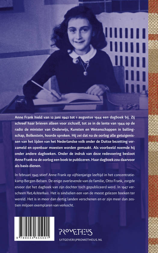 Anne Frank hield van 12 juni 1942 tot 1 augustus 1944 een dagboek bij. In maart 1945 stierf ze op vijftienjarige leeftijd in het concentratiekamp Bergen-Belsen. De enige overlevende van de familie, Annes vader Otto Frank, zorgde ervoor dat het dagboek gepubliceerd werd. In 1947 verscheen Het Achterhuis. Sindsdien is het een van de meest gelezen boeken ter wereld.