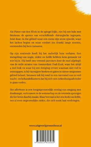 Als Pieter van den Blink in de spiegel kijkt, ziet hij een hals met littekens: de sporen van verschillende chirurgische ingrepen. Juist daar, in dat gebied waar een mens zijn stem opwekt, waar het lachen begint en waar voedsel (en drank) langs moeten, ontstonden bij hem tumoren. Op zijn zestiende heeft hij het ouderlijk huis verlaten. Een mengeling van angst, ziekte en liefde hebben hem gemaakt tot wie hij is. Hij heeft een vreemd parcours door de stad afgelegd: van de stille straten van Amsterdam Oud-Zuid, waar het altijd 4 mei leek en waar hij een dreiging ervoer waaraan niet viel te ontsnappen, is hij via ruigere hoeken en gaten in nieuw ontgonnen gebied beland. Intussen tolt hij rond in een carrousel van zo veel wacht- en behandelkamers dat hij zich een padvinder-patiënt is gaan voelen. Het allerbeste is een hoogstpersoonlijk verslag van omgang met doodsangst, vertrouwen in de wetenschap en de vreemde sprongen die het brein daarbij maakt. Maar bovenal is het een boek van liefde, een al even ongeneeslijke ziekte, die zich nooit laat verdringen.