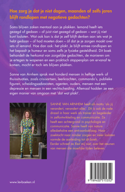 Soms blijven zaken mentaal aan je plakken. Iemand heeft iets gezegd of gedaan – of juist niet gezegd of gedaan – wat jij niet kunt loslaten. Je blijft ermee rondlopen en het bepaalt je humeur en soms zelfs je fysieke gesteldheid. Dit boek behandelt de herkomst van zorgelijke gedachten, de manieren om je ertegen te wapenen en een praktisch stappenplan om ervanaf te komen, mocht er toch iets blijven plakken.