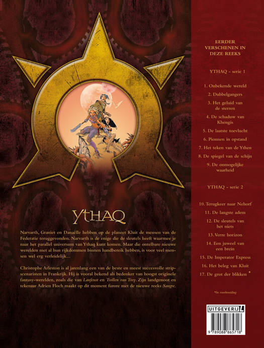 Arleston en Floch op hun best.....Narvarth, Graniet en Danaëlle hebben op de planeet Kluit de mensen van de Federatie teruggevonden. Narvarth is de enige die de sleutels heeft waarmee je naar het parallel universum van Ythaq kunt komen. Maar die ontelbare nieuwe werelden met al hun rijkdommen binnen handbereik hebben, is voor veel mensen wel erg verleidelijk........Christophe Arleston is al jarenlang een van de beste en meest succesvolle strip-?scenaristen in Frankrijk. Hij is vooral bekend als bedenker van hoogst originele?fantasy-werelden, zoals die van Lanfeust en Trollen van Troy. Zijn landgenoot en ?tekenaar Adrien Floch maakt op dit moment furore met de nieuwe reeks Sangre.