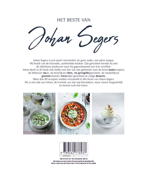 Johan deelt in dit boek met liefde voor het vak zijn geheimen voor de beste basisrecepten, de lekkerste visjes, de heerlijkste vlees, -en gevogeltegerechten, de smakelijkste groenteschotels, feestelijke gerechten en zalige desserts. Meer dan 80 recepten werden verzameld in Het beste van Johan Segers.