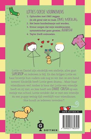 Lottie en Daniel zijn eindelijk een stelletje, alles gaat SUPERTOP en iedereen is blij (nou ja, behalve Amber dan, maar die houdt gewoon van drama). Amber vindt het belachelijk dat Lottie een vriendje heeft en zij niet, dus houdt ze audities op school om haar eigen droomman te vinden. Jess vertelt haar vriendinnen dat ze denkt dat ze gay is en een DIKKE CRUSH heeft op iemand op school. En ondertussen krijgt Lotties broertje Toby het voor elkaar dat de familie een hond neemt - de schattige, maar o zo ondeugende cockapoo Noedel. Lottie komt er al gauw achter dat er met een vriendje én een puppy maar weinig tijd overblijft voor haar vriendinnen. Hoe houdt Lottie iedereen tevreden?!