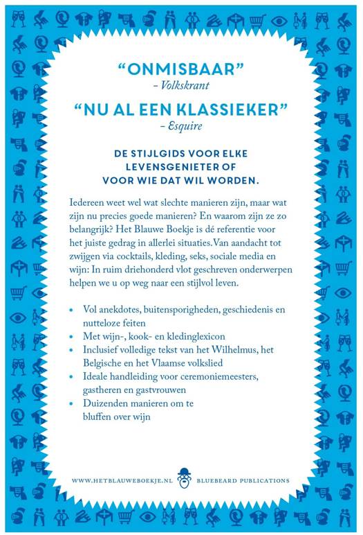 Iedereen weet wel wat slechte manieren zijn, maar wat zijn nu precies goede manieren? En waarom zijn ze zo belangrijk? Het Blauwe Boekje is dé referentie voor het juiste gedrag in allerlei situaties.Van aandacht tot zwijgen via cocktails, kleding, seks, sociale media en wijn: In ruim driehonderd vlot geschreven onderwerpen helpen we u op weg naar een stijlvol leven.