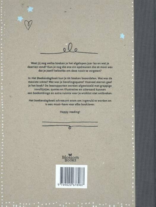 In Het Boekendagboek kun je bijna 70 boeken beschrijven, beoordelen en herinneren. Wat was de mooiste scène? Je lievelingsquote? Het leukste personage? Hoe veel sterren geef je het boek? Deze spreads worden afgewisseld met lijstjes ('Deze boeken zou ik redden uit een brandend huis'), quotes en fantastische illustraties.