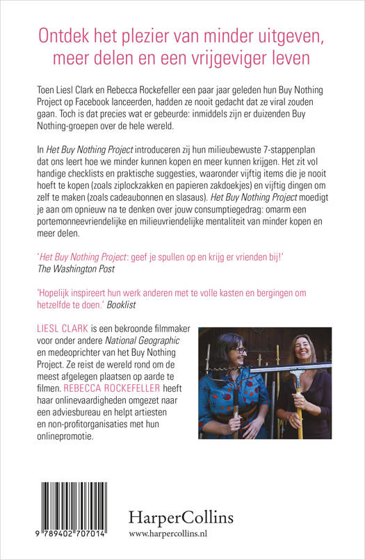 In Het Buy Nothing Project introduceren zij hun milieubewuste 7-stappenplan dat ons leert hoe we minder kunnen kopen en meer kunnen krijgen. Het zit vol handige checklists en praktische suggesties, waaronder vijftig items die je nooit hoeft te kopen (zoals ziplockzakken en papieren zakdoekjes) en vijftig dingen om zelf te maken (zoals cadeaubonnen en slasaus). Het Buy Nothing Project moedigt je aan om opnieuw na te denken over jouw consumptiegedrag: omarm een portemonneevriendelijke en milieuvriendelijke mentaliteit van minder kopen en meer delen.