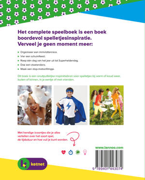 Het complete speelboek is een boek boordevol spelletjesinspiratie. Verveel je geen moment meer: - Organiseer een minivlottenrace - Vier een schuimfeest - Roep één dag van het jaar uit tot Superheldendag - Doe een stoelendans - Maak een stop-motionfilmpje Dit boek is een onuitputtelijke inspiratiebron voor spelletjes bij warm of koud weer, buiten of binnen, in je eentje of met vrienden. Met handige icoontjes die je alles vertellen over het soort spel, de tijdsduur en hoe vuil je kunt worden.