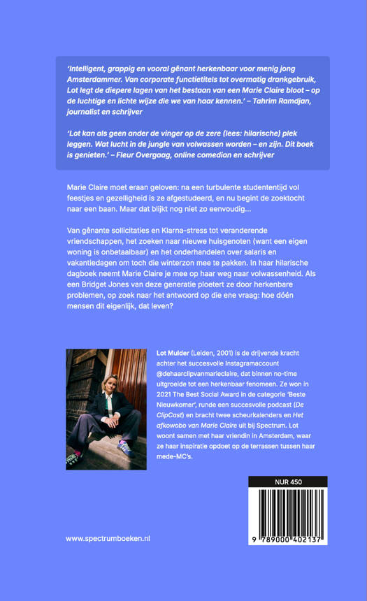 Na het grote succes op Instagram en TikTok met @dehaarclipvanmarieclaire en eerdere bestsellers, komt meesterbrein Lot Mulder nu met een nieuw boek: Het dagboek van (de haarclip van) Marie Claire. Lot neemt je op haar herkenbare en hilarische manier mee in het leven van Marie Claire, eind twintiger-/begin dertiger-inwording, die verdwaalt in de reis naar volwassen worden.