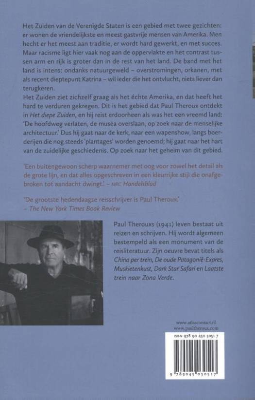 'Het diepe Zuiden' van Paul Theroux gaat over het Zuiden van de Verenigde Staten, een gebied met twee gezichten: er wonen de vriendelijkste en meest gastvrije mensen van Amerika. Men hecht er het meest aan traditie, er wordt hard gewerkt, en met succes. Maar racisme ligt hier vaak nog aan de oppervlakte en het contrast tussen arm en rijk is groter dan in de rest van het land. De band met het land is intens: ondanks natuurgeweld – overstromingen, orkanen, met als recent dieptepunt Katrina – wil ieder die het ontvlucht, niets liever dan terugkeren. Het Zuiden ziet zichzelf graag als het échte Amerika, en dat heeft het hard te verduren gekregen. Dit is het gebied dat Paul Theroux ontdekt in 'Het diepe Zuiden', en hij reist erdoorheen als was het een vreemd land: 'De hoofdweg verlaten, de musea overslaan, op zoek naar de menselijke architectuur.' Dus gaat hi naar de kerk, naar een wapenshow, langs boerderijen die nog steeds 'plantages' worden genoemd; hij gaat naar het hart van de zuidelijke geschiedenis. Op zoek naar het geheim van dit gebied.