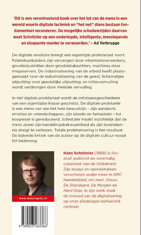 De digitale revolutie brengt een eigentijds proletariaat voort. Fabrieksarbeiders zijn vervangen door informatieverwerkers, grootindustriëlen door grootdatabezitters, machines door megaservers. De industrialisering van de arbeid heeft plaatsgemaakt voor de industrialisering van de geest, lichamelijke uitputting voor geestelijke uitputting, en milieuvervuiling wordt verdrongen door mentale vervuiling.