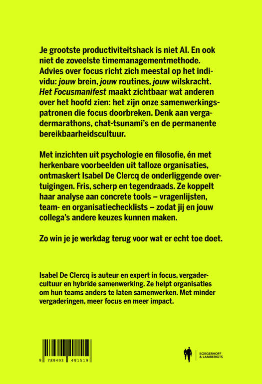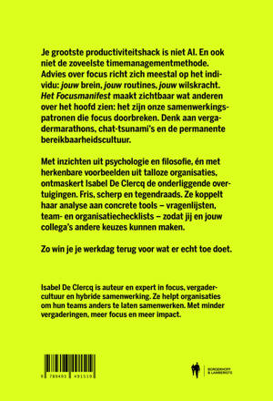 Je grootste productiviteitshack is niet AI. En ook niet de zoveelste timemanagementmethode. Advies over focus richt zich meestal op het individu: jouw brein, jouw routines, jouw wilskracht. Het Focusmanifest maakt zichtbaar wat anderen over het hoofd zien: het zijn onze samenwerkingspatronen die focus doorbreken. Denk aan vergadermarathons, chat-tsunami’s en de permanente bereikbaarheidscultuur.