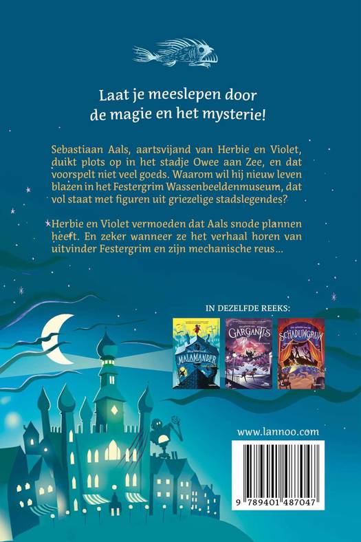 Sebastiaan Aals, aartsvijand van Herbie en Violet, duikt plots op in het stadje Owee aan Zee, en dat voorspelt niet veel goeds. Waarom wil hij nieuw leven blazen in het Festergrim Wassenbeeldenmuseum, dat vol staat met figuren uit griezelige stadslegendes?