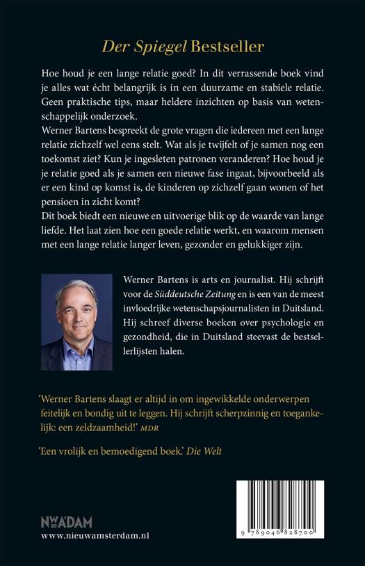 Werner Bartens bespreekt de grote vragen die iedereen met een lange relatie zichzelf wel eens stelt. Wat als je twijfelt of je samen nog een toekomst ziet? Kun je ingesleten patronen veranderen? Hoe houd je je relatie goed als je samen een nieuwe fase ingaat, bijvoorbeeld als er een kind op komst is, de kinderen op zichzelf gaan wonen of het pensioen in zicht komt?