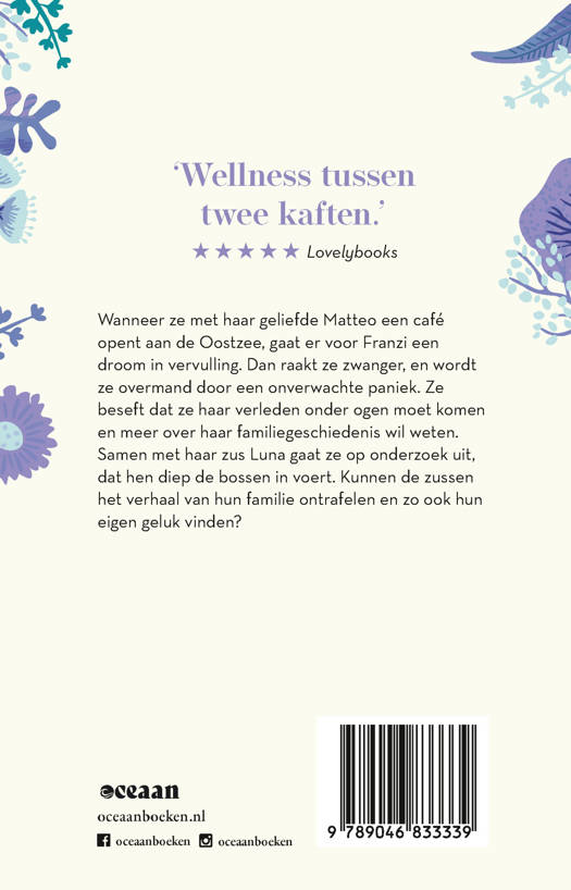 De bestsellertrend: mindful romance Franzi heeft haar droom waargemaakt en met haar geliefde Matteo een café geopend aan de Oostzee. Wanneer ze zwanger raakt, beseft ze dat ze haar verleden onder ogen moet komen en meer over haar overleden vader wil weten. Samen met haar zus Luna gaat ze op onderzoek, dat hen diep de bossen in voert. Vinden de zussen uit wat hun vader voor ze heeft achtergelaten, en kunnen ze zo ook hun eigen geluk vinden? In mindful romance speelt de natuur een belangrijke rol. Het zijn ontroerende en inspirerende romans over wat ons verbindt met elkaar en met de wereld om ons heen, en over de alledaagse momenten van geluk die het leven de moeite waard maken. Van de boeken van Patricia Koelle zijn wereldwijd meer dan 750.000 exemplaren verkocht. Lees ook Het licht in de bomen.