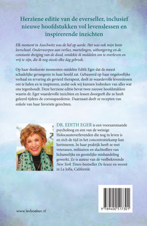Op haar donkerste momenten ontdekte Edith Eger dat de meest schadelijke gevangenis in haar hoofd zat. Gebaseerd op haar ongelooflijke verhaal en ervaring als gevierd therapeut, deelt ze waardevolle levenslessen om te helen en te inspireren, zodat ook wij kunnen losbreken van alles wat ons tegenhoudt. Deze herziene editie van Het geschenk bevat twee nieuwe hoofdstukken waarin dr. Eger de waardevolle inzichten en lessen doorgeeft die ze heeft geleerd tijdens de COVID-19-pandemie. Daarnaast deelt ze recepten van enkele van haar favoriete gerechten.