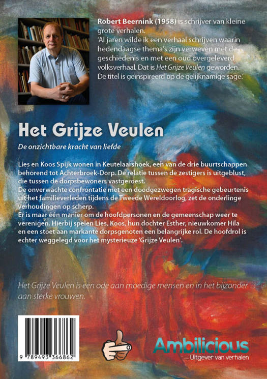 De onzichtbare kracht van liefde Lies en Koos Spijk wonen in Keutelaarshoek, een van de drie buurtschappen behorend tot Achterbroek-Dorp. De relatie tussen de zestigers is uitgeblust, die tussen de dorpsbewoners vastgeroest. De onverwachte confrontatie met een doodgezwegen tragische gebeurtenis uit het familieverleden tijdens de Tweede Wereldoorlog, zet de onderlinge verhoudingen op scherp. Er is maar één manier om de hoofdpersonen en de gemeenschap weer te verenigen. Hierbij spelen Lies, Koos, hun dochter Esther, nieuwkomer Hila en een stoet aan markante dorpsgenoten een belangrijke rol. De hoofdrol is echter weggelegd voor het mysterieuze Grijze Veulen.