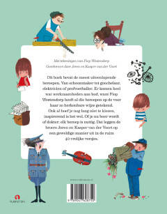 Dit boek bevat de meest uiteenlopende beroepen. Van schoonmaker tot goochelaar, elektricien of profvoetballer. Er komen heel wat werkzaamheden aan bod, want Fiep Westendorp heeft al die beroepen op de voor haar zo herkenbare wijze getekend. Ook al hoef je nog lang niet te kiezen, inspirerend is het wel. Of je nu boer wordt of dokter; elk beroep is nuttig. Dat leggen de broers Joren en Kasper van der Voort op een geweldige manier uit in de ruim 40 vrolijke versjes.