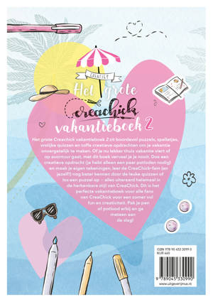 'Het grote Creachick vakantieboek 2' zit boordevol puzzels, spelletjes, vrolijke quizzen en toffe creatieve opdrachten om je vakantie onvergetelijk te maken. Of je nu lekker thuis vakantie viert of op avontuur gaat, met dit boek verveel je je nooit. Doe een creatieve opdracht (je hebt alleen een paar potloden nodig) en maak je eigen tekeningen, leer de CreaChick-fam (en jezelf!) nog beter kennen door de leuke quizzen of los een puzzel op – alles uiteraard helemaal in de herkenbare stijl van CreaChick. Dit is het perfecte vakantieboek voor alle fans van CreaChick voor een zomer vol fun en creativiteit. Pak je pen of potlood erbij en ga meteen aan de slag!