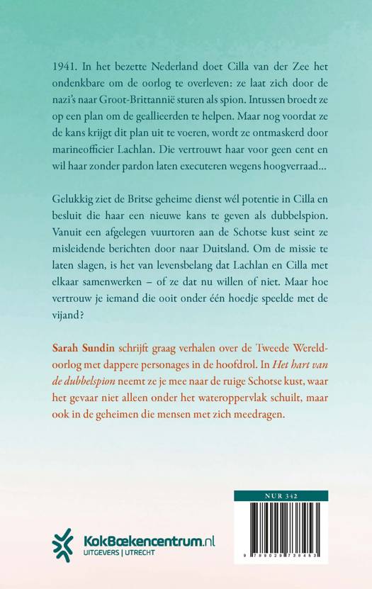 In ‘Het hart van de dubbelspion’ van Sarah Sundin ziet Cilla van der Zee zich genoodzaakt spion te worden voor de nazi’s in Groot-Brittannië om de Duitse bezetting te overleven. Intussen broedt ze op een plan om de geallieerden te helpen. Maar nog voor ze dit plan kan uitvoeren, wordt ze opgepakt door de Schotse marineofficier Lachlan, die haar wil laten executeren voor hoogverraad…
