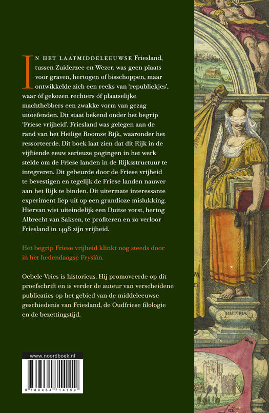 In het laatmiddeleeuwse Friesland, tussen Zuiderzee en Wezer, was geen plaats voor graven, hertogen of bisschoppen, maar ontwikkelde zich een reeks van ‘republiekjes’, waar óf gekozen rechters óf plaatselijke machthebbers een zwakke vorm van gezag uitoefenden. Dit staat bekend onder het begrip ‘Friese vrijheid’. Friesland was gelegen aan de rand van het Heilige Roomse Rijk, waaronder het ressorteerde. Dit boek laat zien dat dit Rijk in de vijftiende eeuw serieuze pogingen in het werk stelde om de Friese landen in de Rijksstructuur te integreren. Dit gebeurde door de Friese vrijheid te bevestigen en tegelijk de Friese landen nauwer aan het Rijk te binden. Dit uitermate interessante experiment liep uit op een grandioze mislukking. Hiervan wist uiteindelijk een Duitse vorst, hertog Albrecht van Saksen, te profiteren en zo verloor Friesland in 1498 zijn vrijheid.