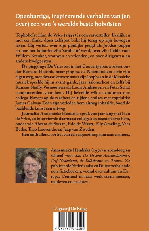 Tophoboïst Han de Vries (1941) is een rasverteller. Eerlijk en met een flinke dosis zelfspot blikt hij terug op zijn bewogen leven. Hij vertelt over zijn pijnlijke jeugd als Joodse jongen en hoe het hoboriet zijn ‘strohalm’ werd, over zijn liefde voor Willem Breuker, vrouwen en vrienden, en over dirigenten en andere kwelgeesten.