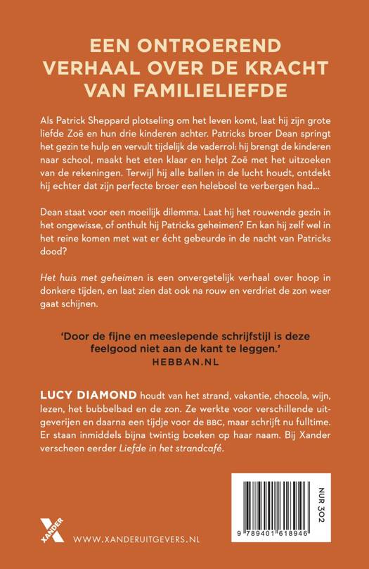 Als Patrick Sheppard in Het huis met geheimen van internationale bestsellerauteur Lucy Diamond plotseling om het leven komt, laat hij zijn grote liefde Zoe en hun drie kinderen achter. Patricks broer Dean springt het gezin te hulp en vervult tijdelijk de vaderrol: hij brengt de kinderen naar school, maakt het eten klaar en helpt Zoë met het uitzoeken van de rekeningen. Terwijl hij alle ballen in de lucht houdt, ontdekt hij echter dat zijn perfecte broer een heleboel te verbergen had...