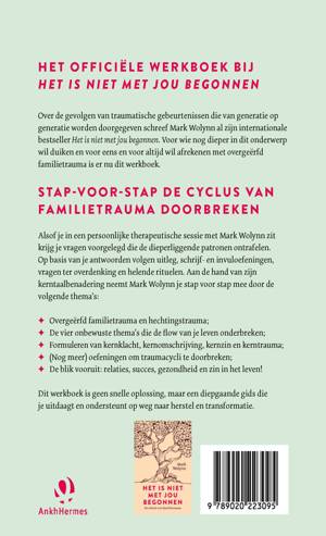 Voor wie nog dieper in dit onderwerp wil duiken en voor eens en voor altijd wil afrekenen met overgeërfd familietrauma is er nu het officiële werkboek: 'Het is (nog steeds) niet met jou begonnen'. Alsof je in een een-op-een therapeutische sessie met Mark Wolynn zit krijg je allerlei vragen voorgelegd die de dieperliggende patronen in je leven ontrafelen. Op basis van je antwoorden volgen uitleg en toelichting, schrijf- en invuloefeningen, lichaamsgerichte oefeningen, doordenkvragen en helende rituelen. Aan de hand van zijn kerntaalbenadering neemt Mark Wolynn je stap voor stap mee door de volgende thema’s: