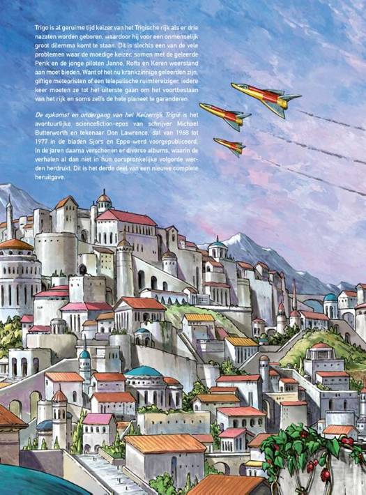 Trigo is al geruime tijd keizer van het Trigische rijk als er drie nazaten worden geboren, waardoor hij voor een onmenselijk groot dilemma komt te staan. Dit is slechts een van de vele problemen waar de moedige keizer, samen met de geleerde Perik en de jonge piloten Janno, Roffa en Keren weerstand aan moet bieden. Want of het nu krankzinnige geleerden zijn, giftige meteorieten of een telepatische ruimtereiziger, iedere keer moeten ze tot het uiterste gaan om het voortbestaan van het rijk en soms zelfs de hele planeet te garanderen. In dit album zijn, naast een uitgebreid dossier over het ontstaan van de reeks, ook de verhalen De zonen van de keizer, De fatale wijn, De verboden stad, De onzichtbare veroordeelde en De formule van Perik opgenomen. Deze uitgave werd gereproduceerd vanaf de originele schilderijen, drukfilms en publicaties uit de jaren 60-70.