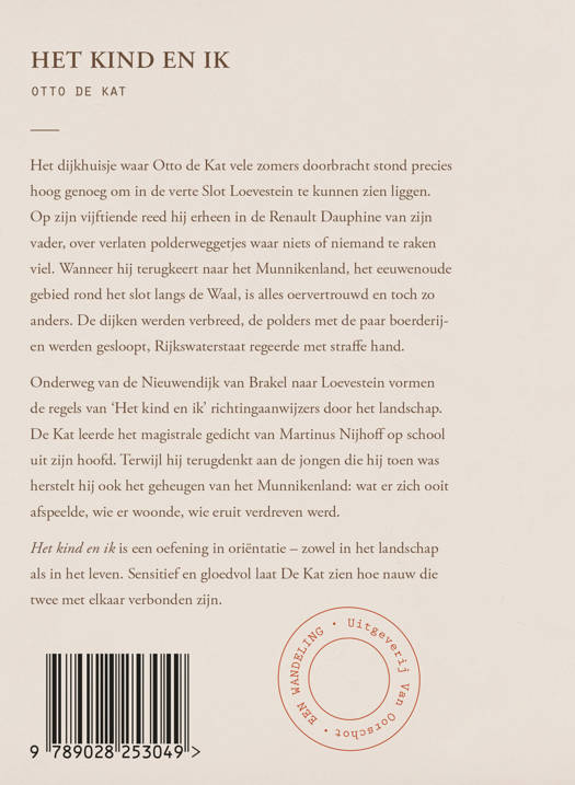 Onderweg van de Nieuwendijk van Brakel naar Loevestein vormen de regels van ‘Het kind en ik’ richtingaanwijzers door het landschap. De Kat leerde het magistrale gedicht van Martinus Nijhoff op school uit zijn hoofd. Terwijl hij terugdenkt aan de jongen die hij toen was herstelt hij ook het geheugen van het Munnikenland: wat er zich ooit afspeelde, wie er woonde, wie eruit verdreven werd.