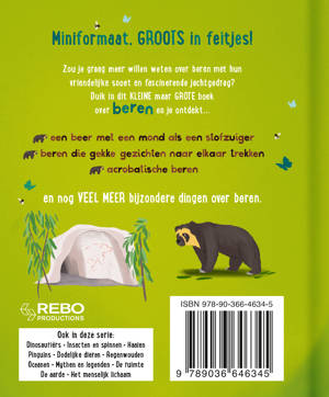 Zou je graag meer willen weten over beren met hun vriendelijke snoet en fascinerende jachtgedrag? Duik in dit kleine maar grote boek over beren en je ontdekt een beer met een mond als stofzuiger, beren die gekke gezichten naar elkaar trekken, acrobatische beren en nog veel meer bijzondere dingen over beren.