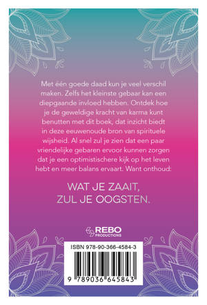 Met één goede daad kun je veel verschil maken. Zelfs het kleinste gebaar kan een diepgaande invloed hebben. Ontdek hoe je de geweldige kracht van karma kunt benutten met dit boek, dat inzicht biedt in deze eeuwenoude bron van spirituele wijsheid. Al snel zul je zien dat een paar vriendelijke gebaren ervoor kunnen zorgen dat je een optimistischere kijk op het leven hebt en meer balans ervaart. Want onthoud: wat je zaait, zul je oogsten.