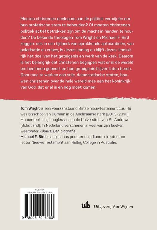 De bekende theologen Tom Wright en Michael F. Bird zeggen: ook in een tijdperk van oprukkende autocratieën, van polarisatie en crises, is Jezus koning en blijft Jezus’ koninkrijk het doel van het getuigenis en werk van de kerk. Daarom is het belangrijk dat christenen begrijpen wat er in de wereld om hen heen gebeurt en hun getuigenis blijven laten horen. Door mee te werken aan vrije, democratische staten, bouwen christenen over de hele wereld mee aan het koninkrijk van God, dat er al is en nog moet komen.