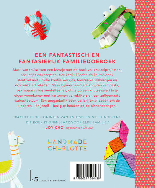 Met dit boek vol knutselprojecten, spelletjes en recepten zijn de kinderen het hele jaar zoet! Het kook- klieder- en knutselboek staat vol met unieke knutselwerkjes, feestelijke lekkernijen en doldwaze activiteiten, van Pinterest-fenomeen Handmade Charlotte. Maak bijvoorbeeld actiefiguren van pasta, een eenhoorn-marionet, of ga op een knutselsafari in je eigen woonkamer met kartonnen verrekijkers en een zelfgemaakt walruskostuum. Ga je liever aan de bak? Maak dan bijvoorbeeld waanzinnige wentelteefjes, courgettebrood of een ondersteboven ananascake. Een toegankelijk boek vol briljante ideeën om de kinderen – én jezelf – bezig te houden op de binnenzitdagen!