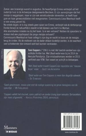 Zomer, een broeierige avond in augustus. De twaalfjarige Emma verdwijnt uit het ouderlijk huis in de Antwerpse deelgemeente Berchem. Er zijn aanwijzingen dat het meisje is weggelopen, maar er zijn ook verontrustender elementen: ze heeft haar gsm en haar geneesmiddelen niet meegenomen. Commissaris Liese Meerhout heeft er een wrang gevoel bij. Na enkele dagen, er is nog steeds geen spoor van Emma, verdwijnt ook de dertienjarige Femke terwijl ze natuurfoto’s neemt in het domein van Fort 4 in Mortsel. Alle alarmbellen rinkelen nu bij het team. Is er een verband? Hebben de speurders te maken met een psychopaat die jonge meisjes ontvoert? Commissaris Meerhout en haar collega’s zijn dag en nacht in touw om de meisjes terug te vinden. Als de motieven van de dader stilaan duidelijk worden, is de waarheid veel schokkender dan iemand ooit had kunnen vermoeden.
