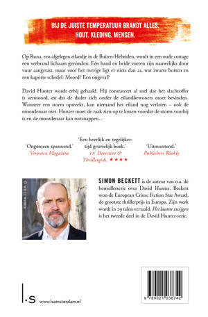 Op het afgelegen eiland Runa wordt in een oude cottage een verbrand lichaam gevonden. Eén hand en beide voeten zijn nauwelijks door vuur aangetast, maar verder ligt er niets dan as, wat zwarte botten en een kapotte schedel. Moord? Een ongeval?