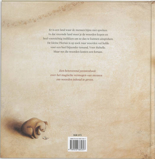 Een ontroerend prentenboek over het zuinige en zinnige gebruik van woorden en zinnen, en over hoe ogen soms meer vertellen dan woorden. Vanaf 5 jaar. In het land van de grote woordfabriek kosten woorden handenvol geld. Mensen zijn er dan ook zuinig op. Arme mensen zoeken in vuilnisbakken naar weggegooide woorden. Op sommige zonnige dagen dwarrelen er echter woorden door de lucht. Florian heeft er drie gevangen met zijn vlindernetje: kersenrood, pannenlapje, stoelendans. Drie woorden die hij tegen Siebelle wil zeggen. Rijke Oscar probeert haar in te palmen met een mond vol dure woorden. Wat zal Siebelle van Florians woorden vinden? Vertaald vanuit het Frans door jeugdauteur Siska Goeminne.